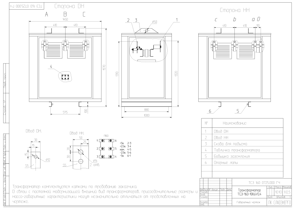 - Напряжение НН, кВ0,4 кВ (или любые другие)