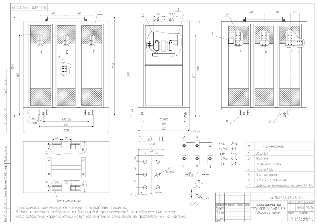 - Мощность, кВА1600